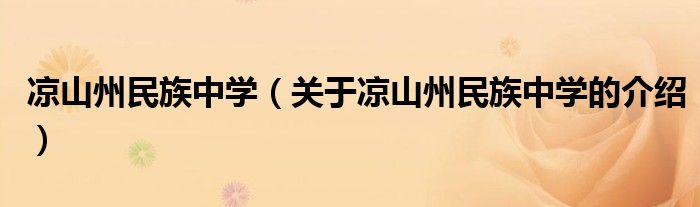 大家好,小都来为大家解答以上的问题。凉山州民族中学,关于凉山州民族中学的介绍很多人还不知道,现在让我们一起来看看吧!
