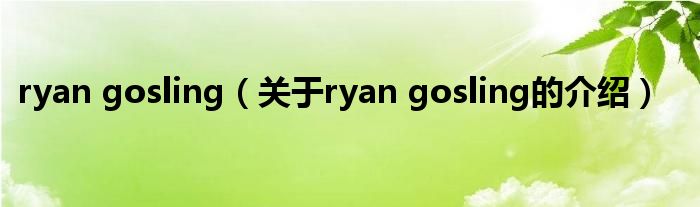 大家好,小都来为大家解答以上的问题。ryan gosling,关于ryan gosling的介绍很多人还不知道,现在让我们一起来看看吧!