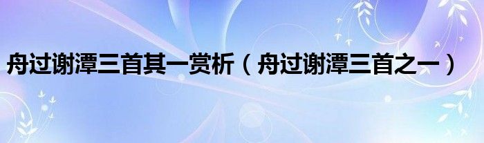 舟过谢潭三首其一赏析,舟过谢潭三首之一这个很多人还不知道,小飞来为大家解答以上的问题。现在让我们一起来看看吧!