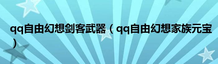 大家好,小飞来为大家解答以上的问题。qq自由幻想剑客武器,qq自由幻想家族元宝这个很多人还不知道,现在让我们一起来看看吧!