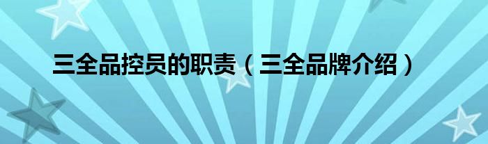 大家好,小源来为大家解答以上问题。三全品控员的职责,三全品牌介绍很多人还不知道,现在让我们一起来看看吧!