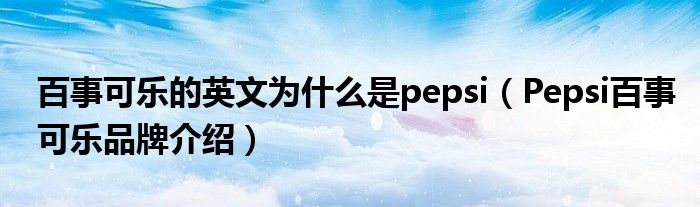 大家好,小源来为大家解答以上问题。百事可乐的英文为什么是pepsi,Pepsi百事可乐品牌介绍很多人还不知道,现在让我们一起来看看吧!