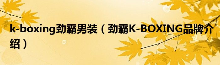 大家好,小源来为大家解答以上问题。k-boxing劲霸男装,劲霸K-BOXING品牌介绍很多人还不知道,现在让我们一起来看看吧!