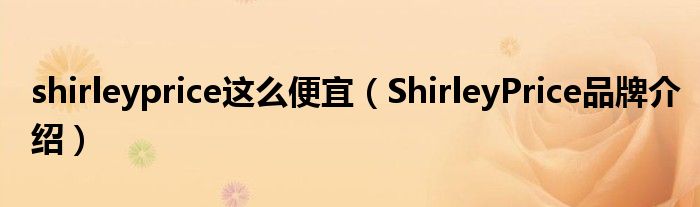 大家好,小源来为大家解答以上问题。shirleyprice这么便宜,ShirleyPrice品牌介绍很多人还不知道,现在让我们一起来看看吧!