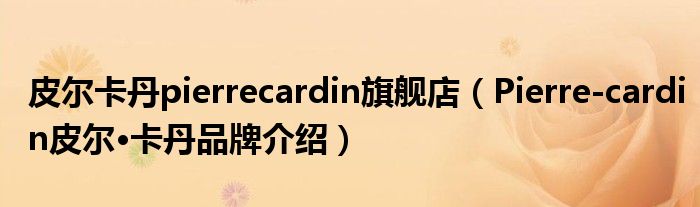 大家好,小源来为大家解答以上问题。皮尔卡丹pierrecardin旗舰店,Pierre-cardin皮尔•卡丹品牌介绍很多人还不知道,现在让我们一起来看看吧!