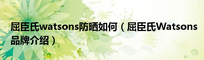 大家好,小源来为大家解答以上问题。屈臣氏watsons防晒如何,屈臣氏Watsons品牌介绍很多人还不知道,现在让我们一起来看看吧!