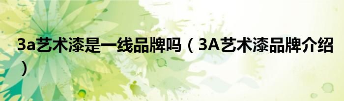 大家好,小源来为大家解答以上问题。3a艺术漆是一线品牌吗,3A艺术漆品牌介绍很多人还不知道,现在让我们一起来看看吧!