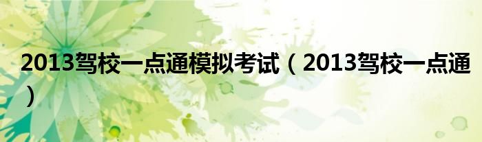 大家好,小飞来为大家解答以上的问题。2013驾校一点通模拟考试,2013驾校一点通这个很多人还不知道,现在让我们一起来看看吧!