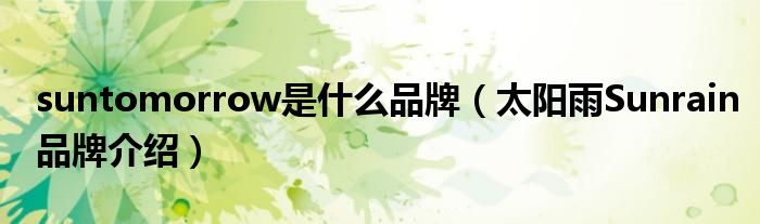 大家好,小源来为大家解答以上问题。suntomorrow是什么品牌,太阳雨Sunrain品牌介绍很多人还不知道,现在让我们一起来看看吧!