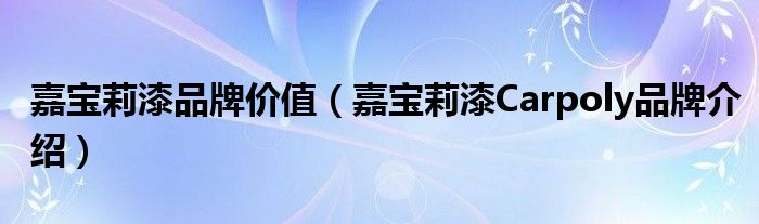 大家好,小源来为大家解答以上问题。嘉宝莉漆品牌价值,嘉宝莉漆Carpoly品牌介绍很多人还不知道,现在让我们一起来看看吧!