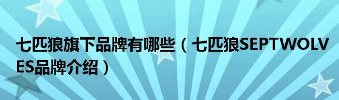 大家好,小源来为大家解答以上问题。七匹狼旗下品牌有哪些,七匹狼SEPTWOLVES品牌介绍很多人还不知道,现在让我们一起来看看吧!
