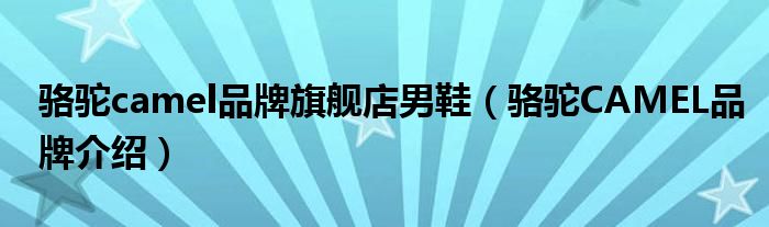 大家好,小源来为大家解答以上问题。骆驼camel品牌旗舰店男鞋,骆驼CAMEL品牌介绍很多人还不知道,现在让我们一起来看看吧!
