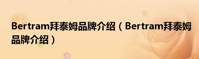 大家好,小源来为大家解答以上问题。Bertram拜泰姆品牌介绍,Bertram拜泰姆品牌介绍很多人还不知道,现在让我们一起来看看吧!