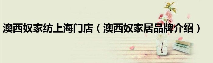 大家好,小源来为大家解答以上问题。澳西奴家纺上海门店,澳西奴家居品牌介绍很多人还不知道,现在让我们一起来看看吧!