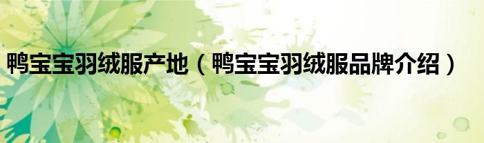 大家好,小源来为大家解答以上问题。鸭宝宝羽绒服产地,鸭宝宝羽绒服品牌介绍很多人还不知道,现在让我们一起来看看吧!