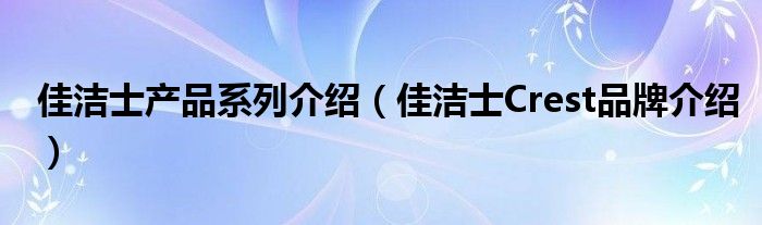 大家好,小源来为大家解答以上问题。佳洁士产品系列介绍,佳洁士Crest品牌介绍很多人还不知道,现在让我们一起来看看吧!