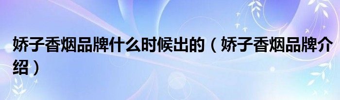 大家好,小源来为大家解答以上问题。娇子香烟品牌什么时候出的,娇子香烟品牌介绍很多人还不知道,现在让我们一起来看看吧!