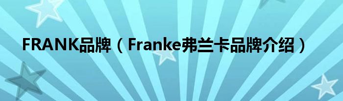大家好,小源来为大家解答以上问题。FRANK品牌,Franke弗兰卡品牌介绍很多人还不知道,现在让我们一起来看看吧!
