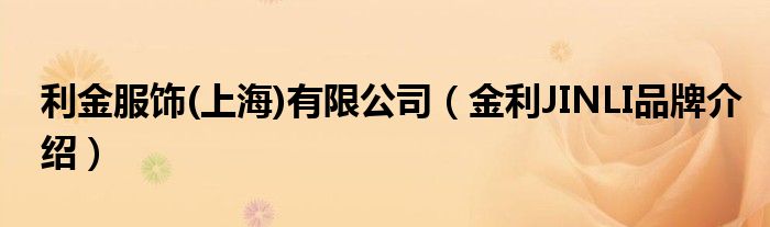 大家好,小源来为大家解答以上问题。利金服饰(上海)有限公司,金利JINLI品牌介绍很多人还不知道,现在让我们一起来看看吧!