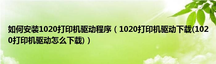 如何安装1020打印机驱动程序(1020打印机驱动下载(1020打印机驱动怎么下载))