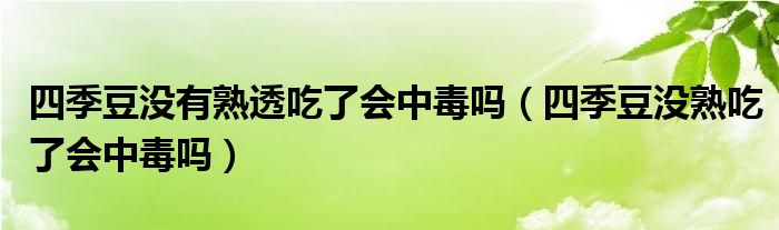 大家好,linda来为大家解答以上的问题。四季豆没有熟透吃了会中毒吗,四季豆没熟吃了会中毒吗很多人还不知道,现在让我们一起来看看吧!