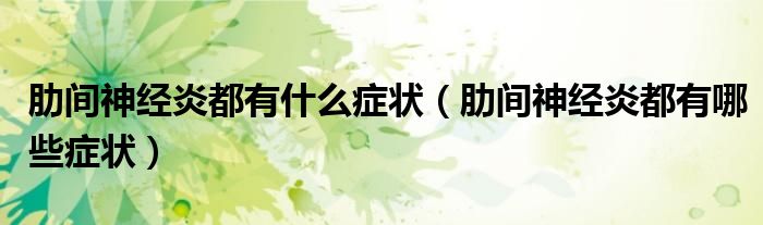 大家好,linda来为大家解答以上的问题。肋间神经炎都有什么症状,肋间神经炎都有哪些症状很多人还不知道,现在让我们一起来看看吧!