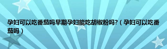 大家好,linda来为大家解答以上的问题。孕妇可以吃番茄吗早期孕妇能吃胡椒粉吗?,孕妇可以吃番茄吗很多人还不知道,现在让我们一起来看看吧!