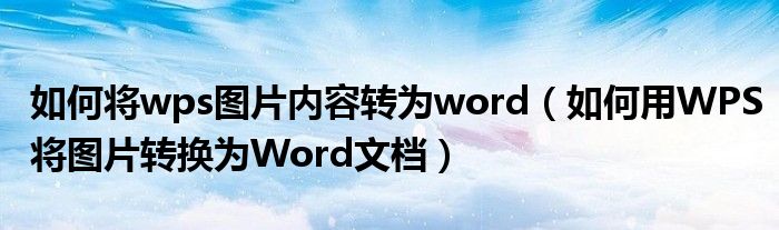 大家好,今天小悦来为大家解答以上问题。如何将wps图片内容转为word,如何用WPS将图片转换为Word文档很多人还不知道,现在让我们一起来看看吧!