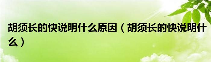 大家好,linda来为大家解答以上的问题。胡须长的快说明什么原因,胡须长的快说明什么很多人还不知道,现在让我们一起来看看吧!
