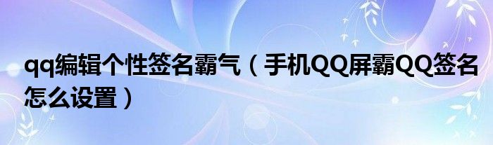 大家好,今天小悦来为大家解答以上问题。qq编辑个性签名霸气,手机QQ屏霸QQ签名怎么设置很多人还不知道,现在让我们一起来看看吧!