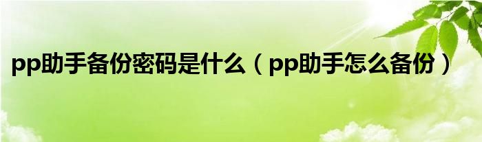 大家好,来宝来为大家解答以下问题,pp助手备份密码是什么,pp助手怎么备份很多人还不知道,今天让我们一起来看看吧!