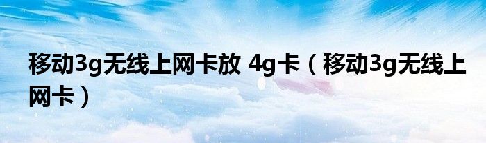 大家好,来宝来为大家解答以下问题,移动3g无线上网卡放 4g卡,移动3g无线上网卡很多人还不知道,今天让我们一起来看看吧!