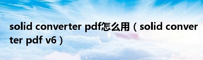 大家好,雨雨来为大家解答以上问题,solid converter pdf怎么用,solid converter pdf v6很多人还不知道,现在让我们一起来看看吧!