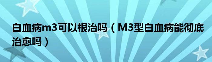 大家好,linda来为大家解答以上的问题。白血病m3可以根治吗,M3型白血病能彻底治愈吗很多人还不知道,现在让我们一起来看看吧!