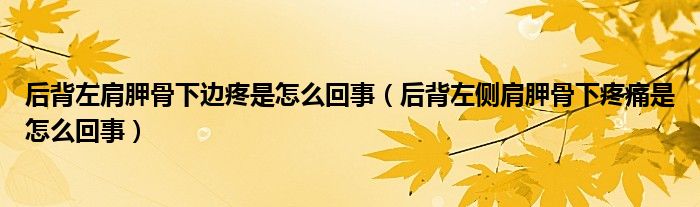 大家好,linda来为大家解答以上的问题。后背左肩胛骨下边疼是怎么回事,后背左侧肩胛骨下疼痛是怎么回事很多人还不知道,现在让我们一起来看看吧!