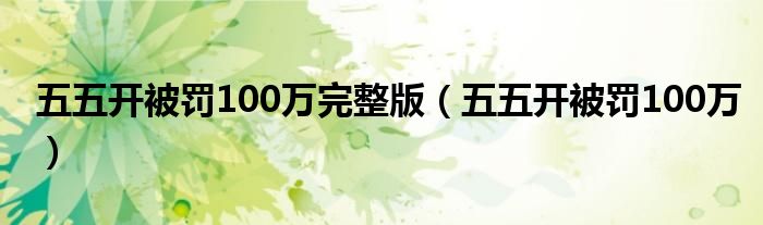 大家好,雨雨来为大家解答以上问题,五五开被罚100万完整版,五五开被罚100万很多人还不知道,现在让我们一起来看看吧!