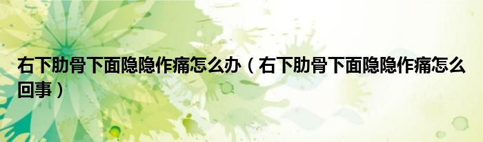大家好,linda来为大家解答以上的问题。右下肋骨下面隐隐作痛怎么办,右下肋骨下面隐隐作痛怎么回事很多人还不知道,现在让我们一起来看看吧!