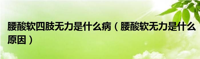 大家好,linda来为大家解答以上的问题。腰酸软四肢无力是什么病,腰酸软无力是什么原因很多人还不知道,现在让我们一起来看看吧!