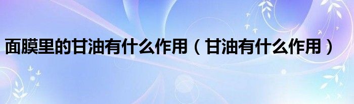 大家好,linda来为大家解答以上的问题。面膜里的甘油有什么作用,甘油有什么作用很多人还不知道,现在让我们一起来看看吧!