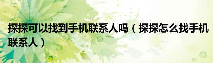 探探可以找到手机联系人吗(探探怎么找手机联系人)