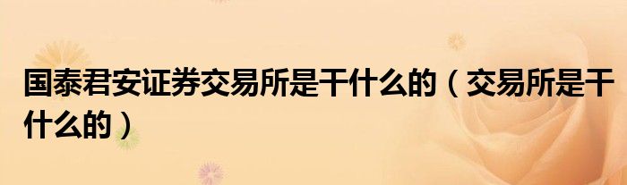 大家好,小晋来为大家解答以下问题,关于国泰君安证券交易所是干什么的,交易所是干什么的很多人还不知道,今天让我们一起来看看吧!