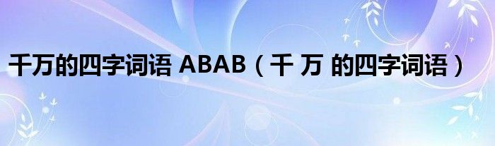 大家好,小晋来为大家解答以下问题,关于千万的四字词语 ABAB,千 万 的四字词语很多人还不知道,今天让我们一起来看看吧!