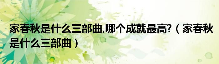 家春秋是什么三部曲,哪个成就最高?(家春秋是什么三部曲)