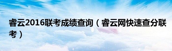 大家好,小晋来为大家解答以下问题,关于睿云2016联考成绩查询,睿云网快速查分联考很多人还不知道,今天让我们一起来看看吧!