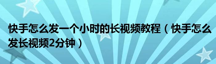 大家好,小晋来为大家解答以下问题,关于快手怎么发一个小时的长视频教程,快手怎么发长视频2分钟很多人还不知道,今天让我们一起来看看吧!