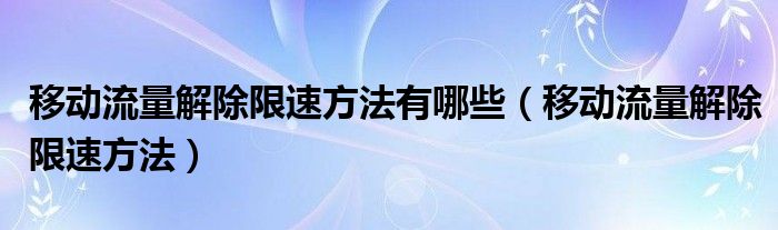 移动流量解除限速方法有哪些(移动流量解除限速方法)