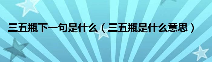 大家好,小晋来为大家解答以下问题,关于三五瓶下一句是什么,三五瓶是什么意思很多人还不知道,今天让我们一起来看看吧!