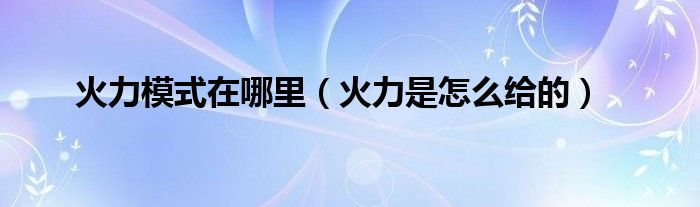 大家好,小晋来为大家解答以下问题,关于火力模式在哪里,火力是怎么给的很多人还不知道,今天让我们一起来看看吧!