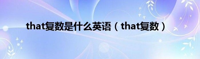 大家好,小晋来为大家解答以下问题,关于that复数是什么英语,that复数很多人还不知道,今天让我们一起来看看吧!