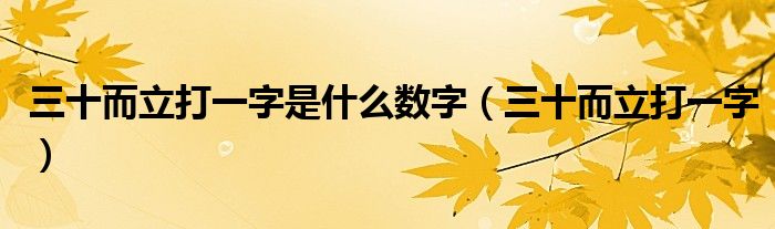大家好,小晋来为大家解答以下问题,关于三十而立打一字是什么数字,三十而立打一字很多人还不知道,今天让我们一起来看看吧!